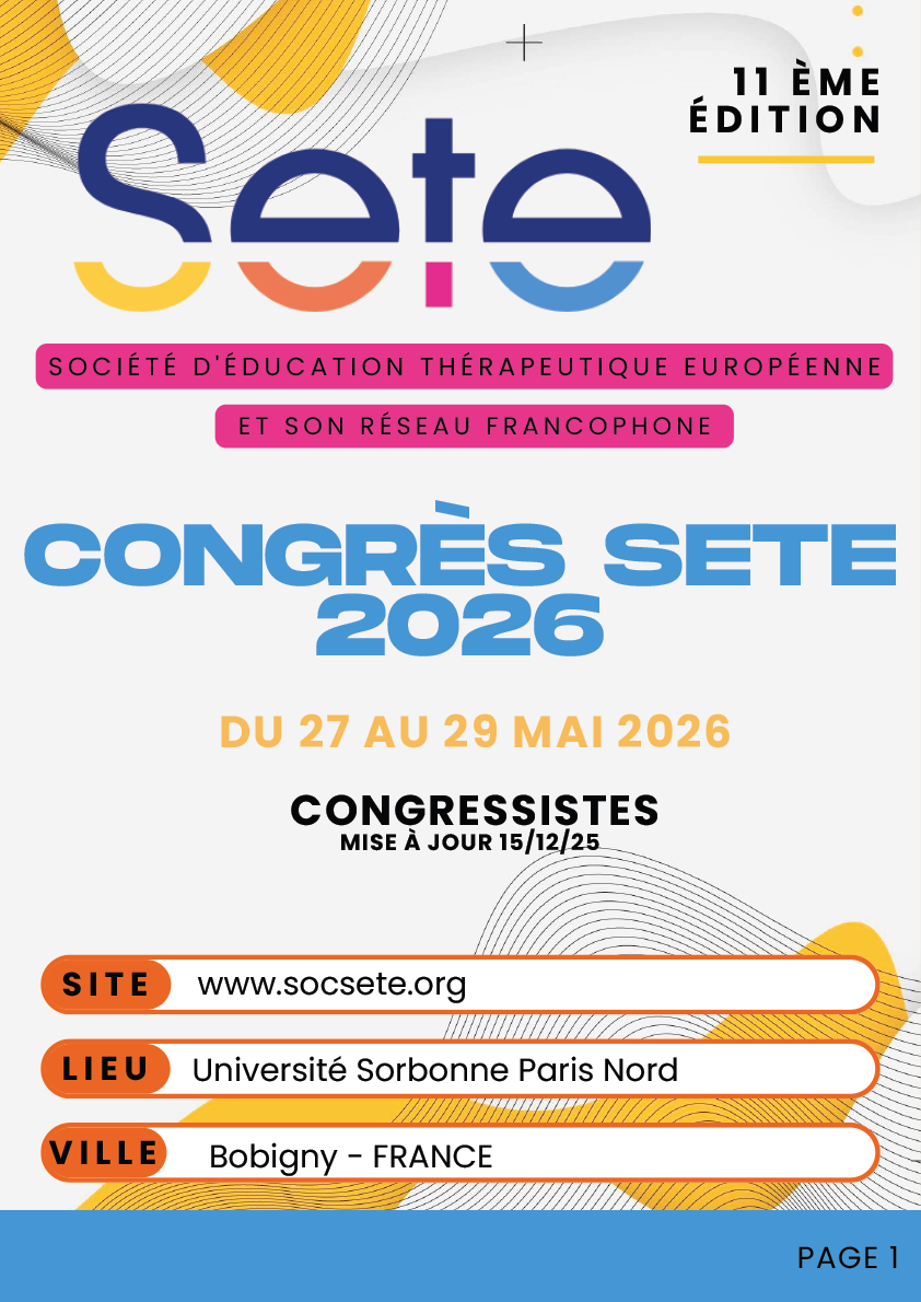 En partenariat avec le comité d’organisation et scientifique de la SETE, ce prochain congrès sera porté par plusieurs structures de l’Université Sorbonne Paris Nord situées au sein de l’Unité de Formation et de Recherche Santé-Médecine-Biologie Humaine toutes engagées dans le développement et l’innovation en Éducation Thérapeutique du Patient (ETP).